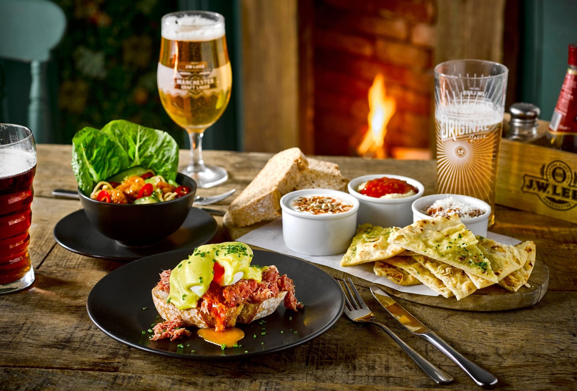 Our home-cooked seasonal dishes are perfect for cosy gatherings with friends and family in Stockport. Choose from delicious new dishes like Crispy fried spiced chicken thighs, Smoked bacon loin chop, Fritto misto and Roasted cauliflower. Also not forgetting timeless pub classics and hearty winter-warming pies, you can expect plenty of choice when looking through our menus. From John Willies beer battered fish to Slow braised steak & JW Lees ale pie there’s a dish for everyone.