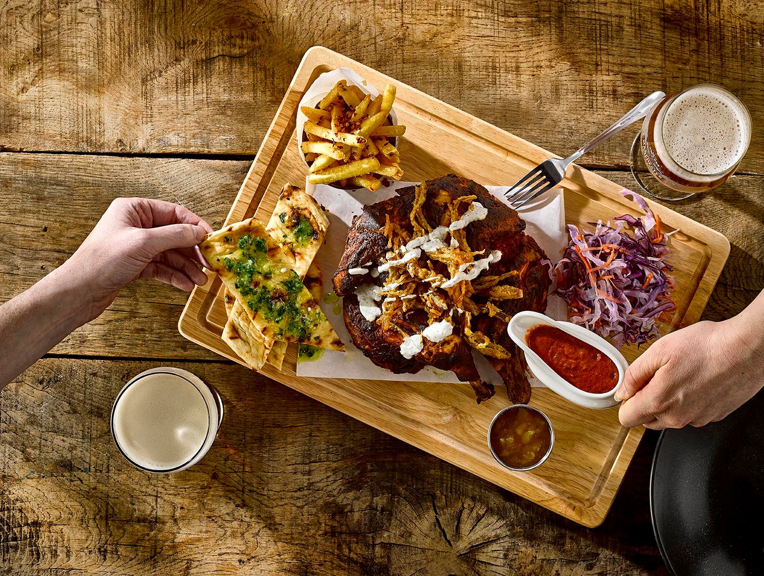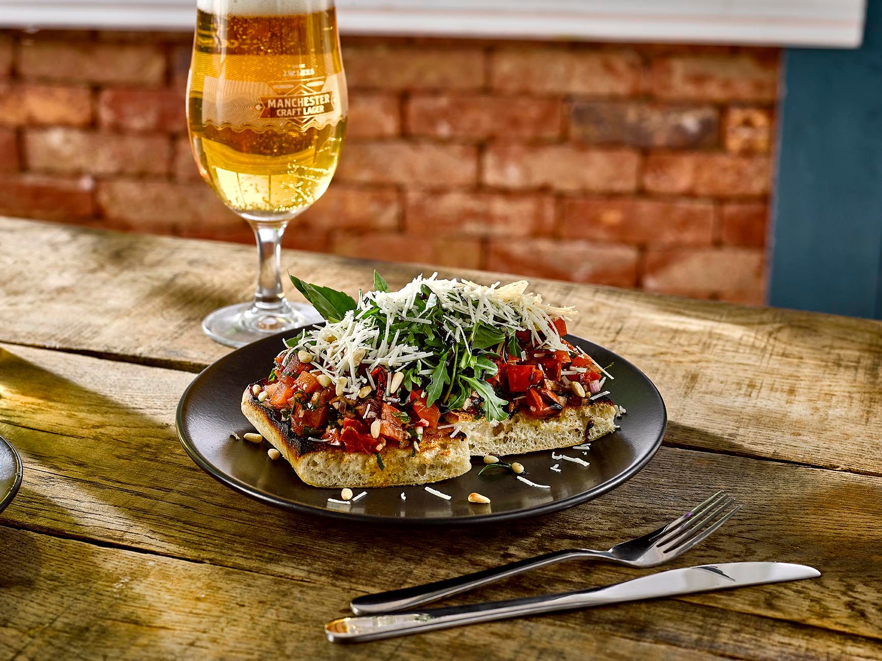 (V) – suitable for vegetarians, (VG) – suitable for vegans, (VGA) – vegan option available, (NGCI) – No Gluten Containing Ingredients, * Can be cooked without gluten. POA = Price On Application. Please ask your server for the price. lf you suffer from a food related allergy please inform a team member for advice before you order. Not all ingredients are listed on the menu & our kitchen uses nuts, gluten and other allergens. Although every care is taken to prevent cross contamination of allergens we cannot guarantee it. Should the listed product be unavailable due to circumstances affecting the supply chain it may be replaced by a similar alternative product. Fish may contain bones. Cooking oil may contain genetically modified ingredients. The calories listed are per serving, additional items to a dish (eg: sauces) are listed separately. Adults require around 2000kcal per day. Weights stated are uncooked and approximate. Prices are GBP. *MPA is our JW Lees Manchester Pale Ale; a golden ale brewed in Manchester entirely from all British malt.